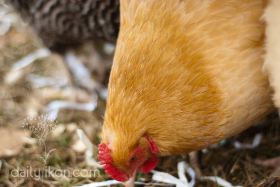 And here’s Henrietta, the one that lets me hold her, and thus she’s rapidly becoming my favorite chicken. And her feathers are so soft!