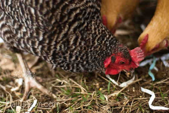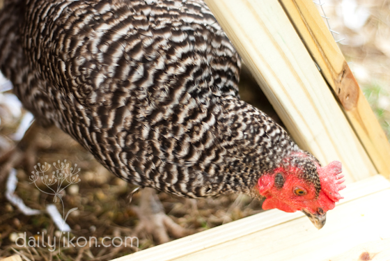 Bonnie, the shy barred rock. But she’s not too shy about scratch, she just tries to stay out of the others’ way…